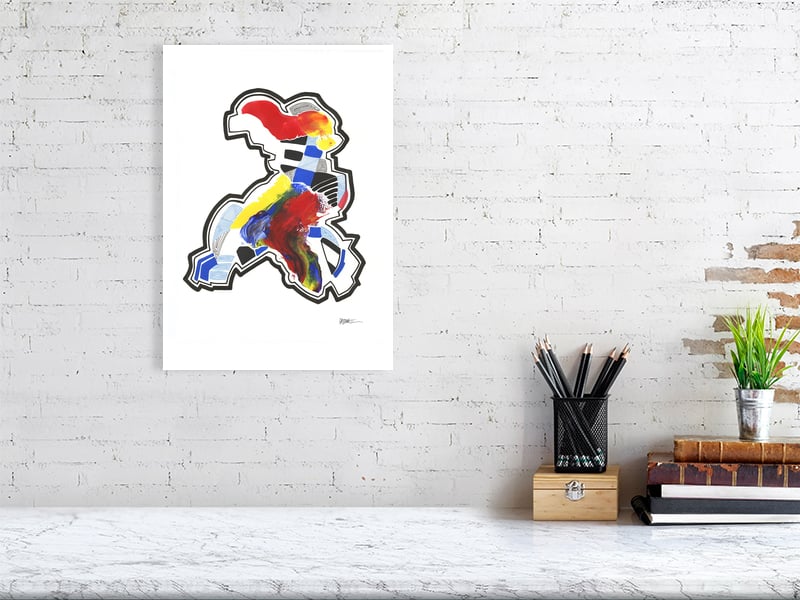Chaque impression est réalisée à partir de fichiers préparés avec attention, afin de préserver la profondeur des couleurs, la texture de la matière et la dynamique du geste. Le choix des papiers et du procédé d’impression vise à offrir une présence sensible et durable de l’œuvre.