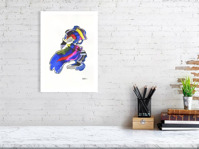 Chaque impression est réalisée à partir de fichiers préparés avec attention, afin de préserver la profondeur des couleurs, la texture de la matière et la dynamique du geste. Le choix des papiers et du procédé d’impression vise à offrir une présence sensible et durable de l’œuvre.