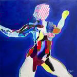 Avec La ligne d’arrivée !, le triomphe s’incarne dans un geste suspendu, saisi à l’instant précis où l’effort bascule en élan. Le corps, porté par la vibration des couleurs, donne à voir cette fraction de seconde où la tension accumulée devient pure énergie visible.