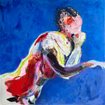 Ici, la peinture devient l’expression de cette vie intérieure : le geste accompagne chaque émotion pour sculpter un espace où le corps dialogue avec la couleur. Les réseaux de la pensée s’y entremêlent dans une envolée, emportant notre regard vers un voyage imaginaire.